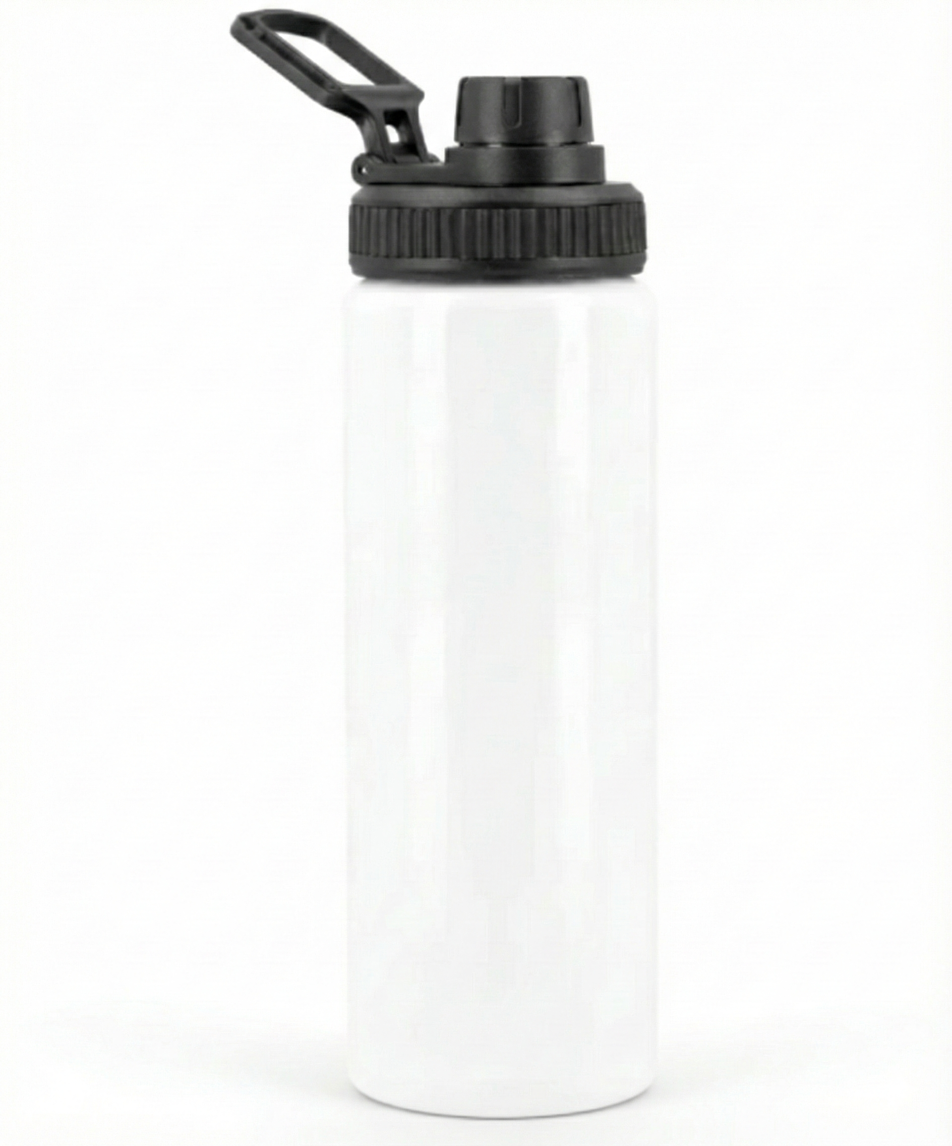 Lleva tu bebida favorita a donde vayas con esta botella deportiva de aluminio, el lienzo perfecto para tu creatividad. Diseñada para la sublimación, garantiza colores vivos y duraderos. Es la compañera ideal para el gimnasio, la oficina o tus aventuras al aire libre. Su diseño ligero y el tapón funcional aseguran una hidratación cómoda y sin derrames.
