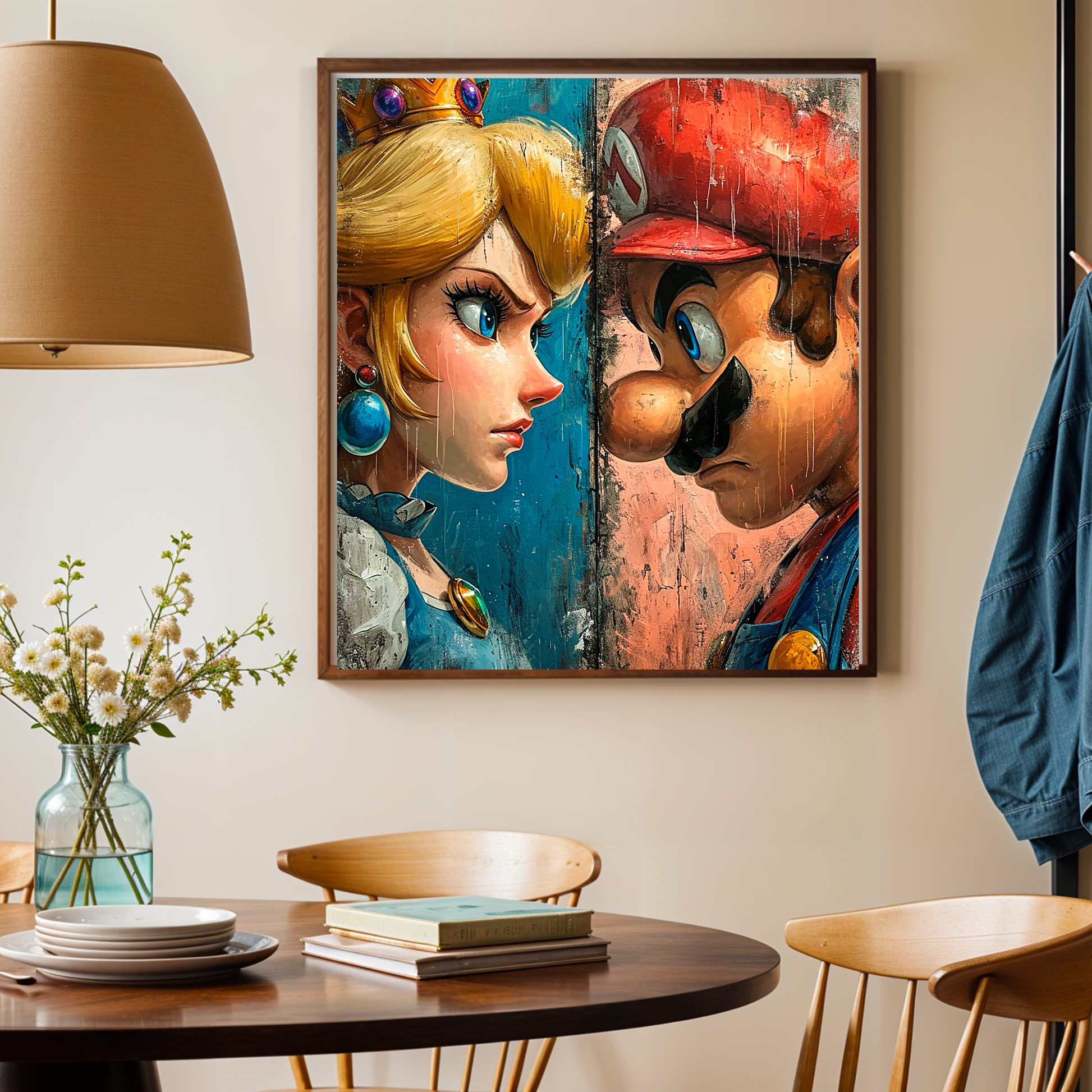Capta la tensión y la dinámica de tus personajes favoritos con estos impresionantes cuadros estilo Split Art. Desde el épico duelo entre Iron Man y Dr. Doom hasta la intensa mirada de Mario y Peach, esta colección de arte en estilo pincelada gruesa es perfecta para cualquier fan del arte geek y el coleccionismo.